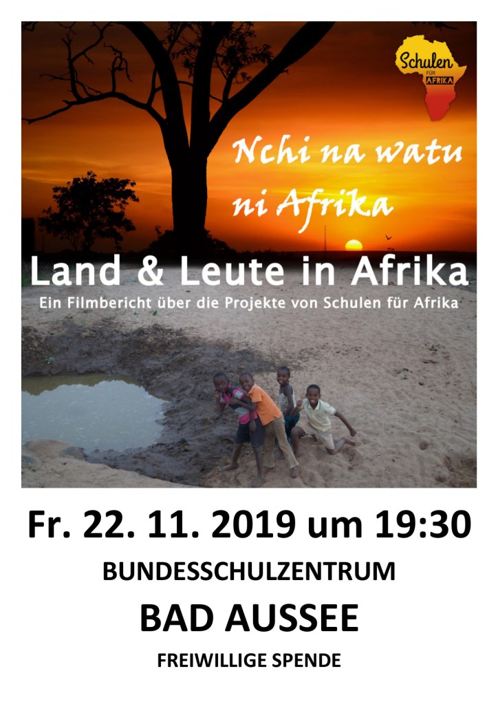 Mit großer Vorfreude dürfen wir den Film über die heurige Projektreise nach Tansania ankündigen. Der neue Film „Nchi na watu ni Afrika – Land & Leute in Afrika“ wird am Freitag, dem 22.November um 19:30 Uhr im Bundesschulzentrum Bad Aussee präsentiert.