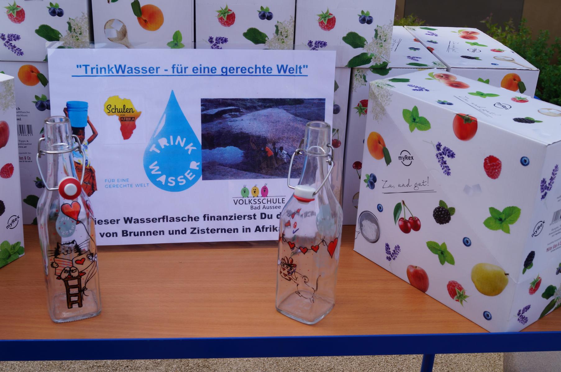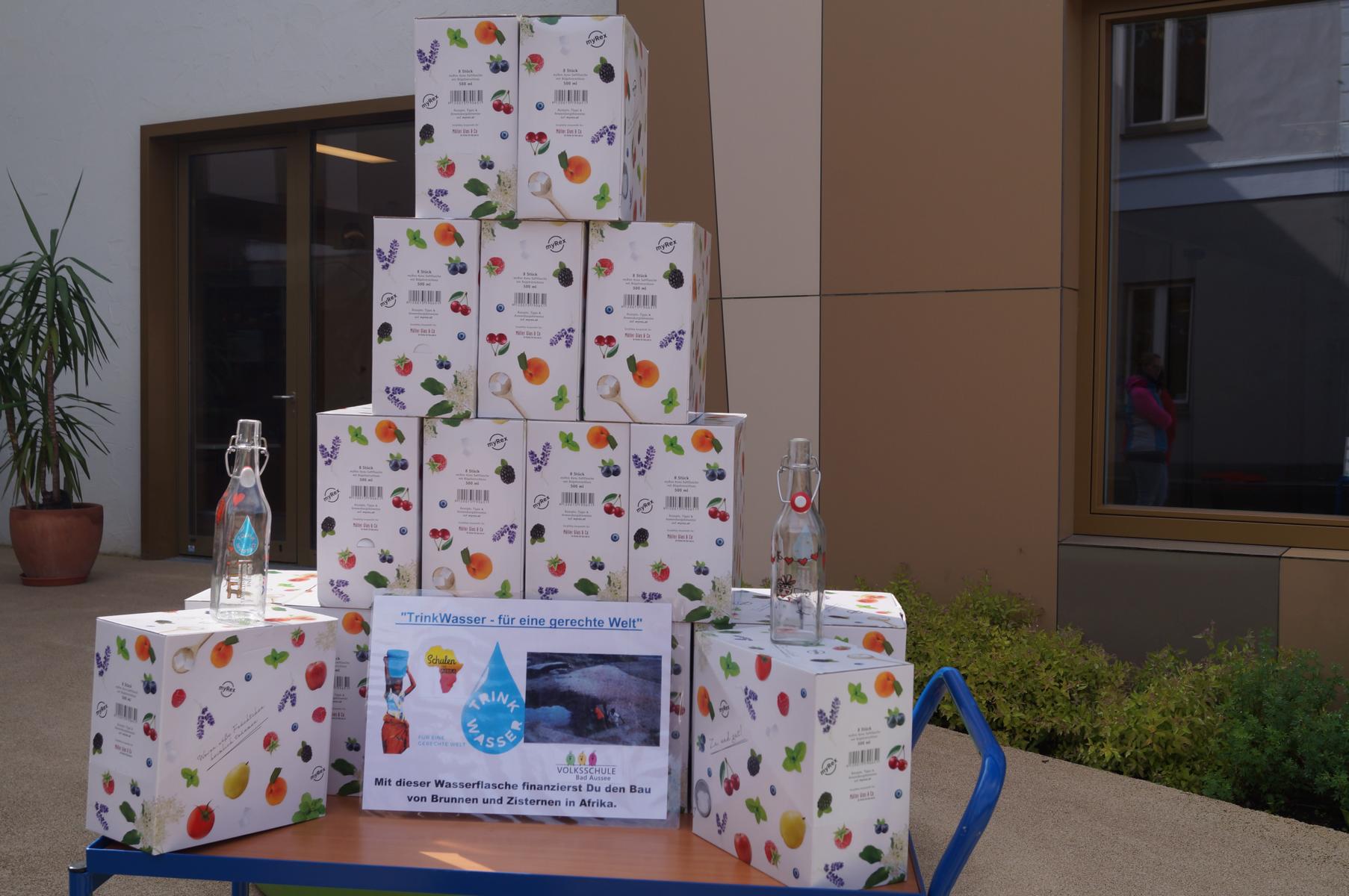Dazu wurden an der Schule Trinkwasserflaschen aus Glas verkauft,